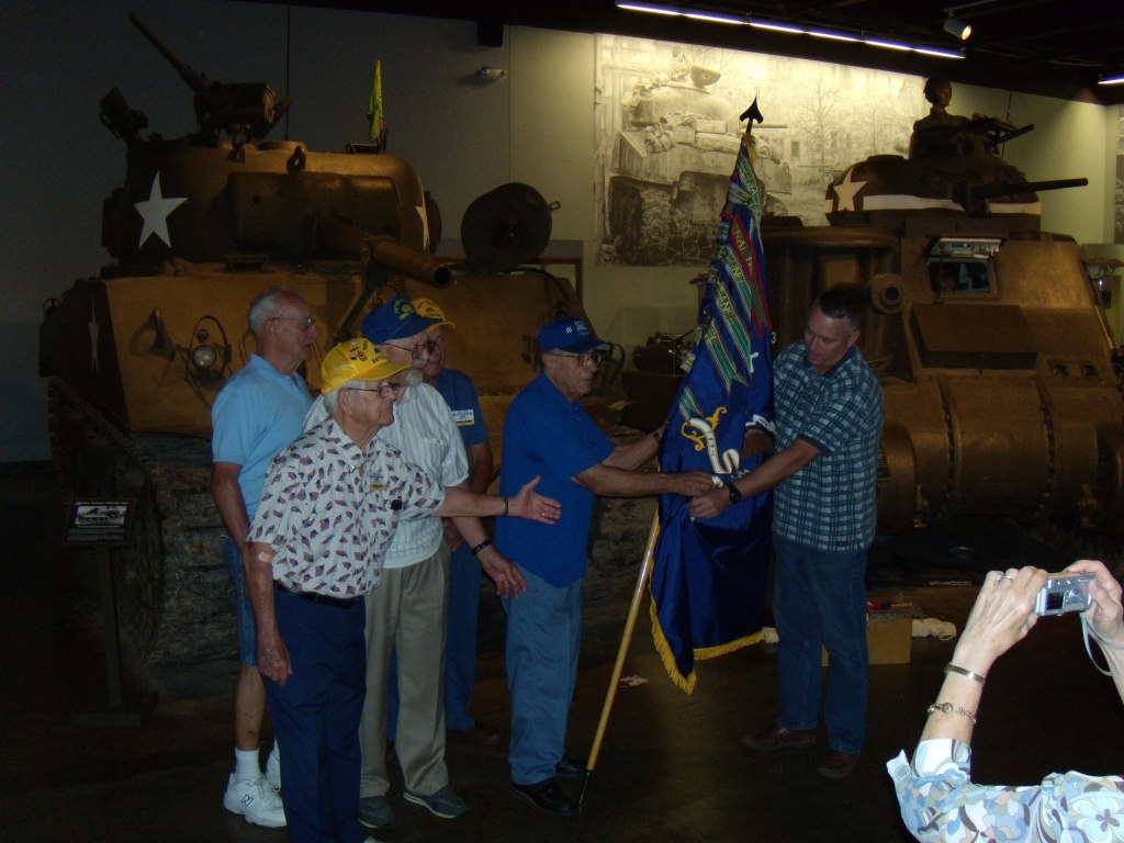 On August 10th, 2010, five veterans of the 756th Tank Battalion attended a ceremony at the Patton Museum at Fort Knox, Kentucky whereby the battalion colors were retired. All association property was also donated to the museum at the same time. Below are several photos from that bittersweet event:
