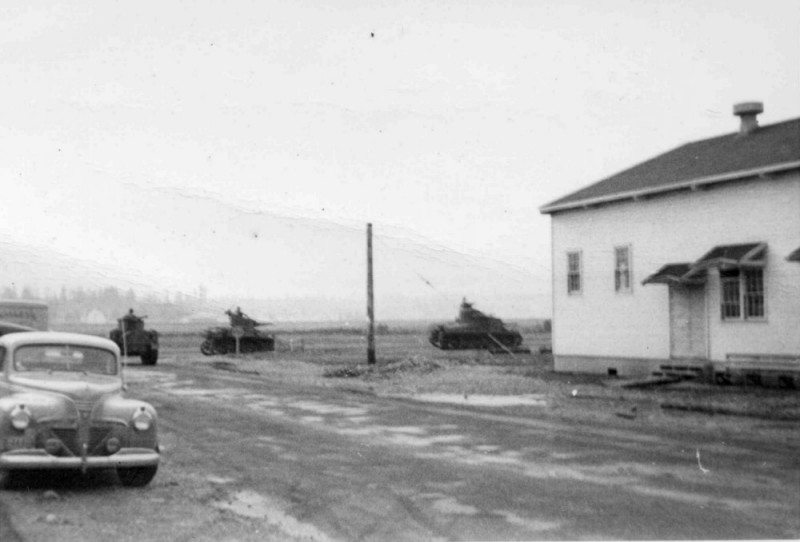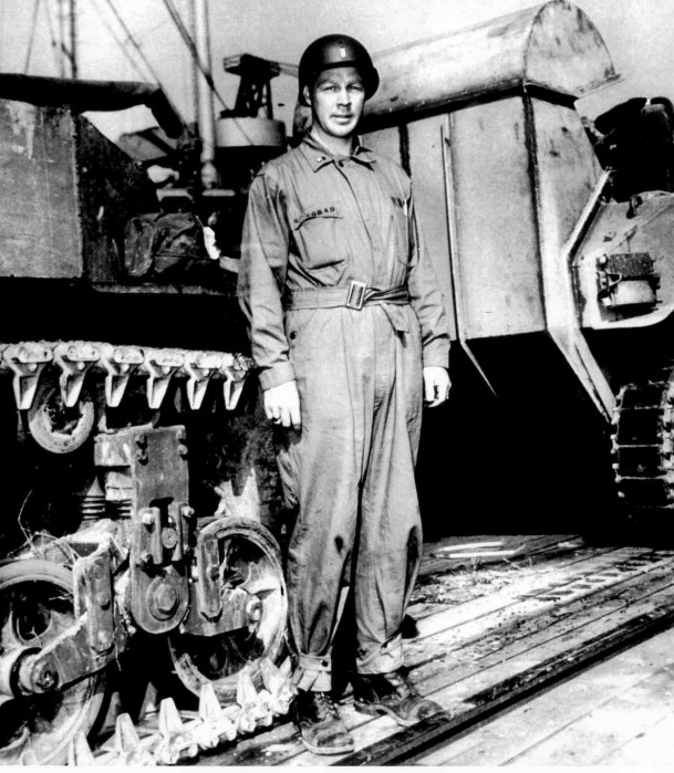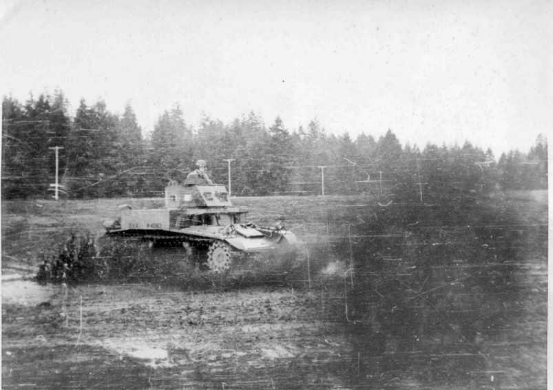 Fort Lewis, Washington, 1941. The 756th Tank Battalion (light) was activated hear on 1 June 1941. (David Redle)Fort Lewis, Washington, 1942. A 756th Tank Battalion M2 “Combat Car” maneuvers through the mud of a training course. M2s were the first “tanks” to be used by the battalion. They were introduced in 1938 and already obsolete by 1940. (David Redle)Fort Lewis, Washington, 1942. Two M3 light tanks (756th Tank Battalion) and an M3 medium tank (752nd Tank Battalion) depart camp for a day of training. (David Redle)Fort Lewis, Washington, 1941. 2nd Lt Roger Fazendin uses hand signals from atop his M3 light tank to guide his platoon during training maneuvers. (David Redle)Fort Lewis, Washington, 1942. Profiled of 2nd Lt Roger Fazendin while training in an M3 light tank. The M3 was later replaced by a newer M5 light tank. (David Redle)Newport News, Virginia, 20 October 1942. 2nd Lt Edwin Olson of C Company prepares to ship out with his platoon of new M5 light tanks as part of the Operation Torch landings near Casablanca, Morocco. (Library of Virginia photo C1:2/01/019)Newport News, Virginia, October 1942. 756th Tank Battalion M5 light tanks equipped for amphibious landings await loading for Operation Torch. (Library of Virginia photo C1:2/01/047)Mignano Area, Italy, January 1944. A tank crew from B Company prepares an M4 “Sherman” for battle. In November 1943 the 756th Tank Battalion was re-designated a medium tank battalion and equipped with M4 medium tanks. (Patton Museum/Gene Palumbo)